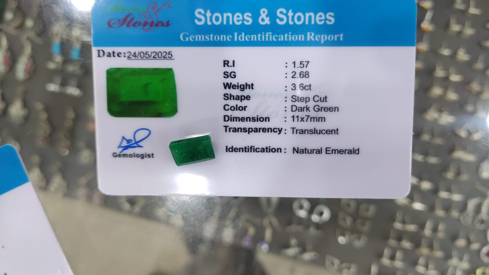 Swat Valley, nestled in the mountains of northern Pakistan, is celebrated for its emerald mines that yield stones of exceptional color and character. This certified natural emerald from Swat Pakistan was ethically sourced and professionally examined by Stones & Stones, a trusted gemological authority. The gemstone identification report confirms its authenticity, physical properties, and natural origin.